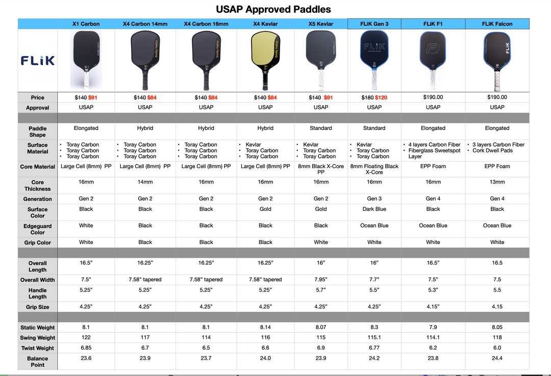 Most paddles force you to choose: power or control. FLiK paddles are engineered differently. Our precision-tested designs give you both—a responsive face for touch shots and the structural integrity for aggressive play. Every paddle is tested for balance point, twist weight, and swing weight, so you know exactly what you're getting